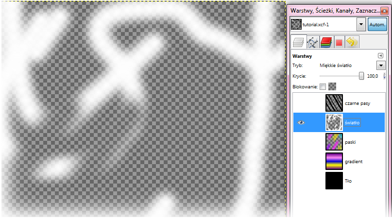 Lime Point 42. Dodajemy nową, przezroczystą warstwę, nazywamy ją światło i umieszczamy nad warstwą paski. Tryb warstwy ustawiamy na miękkie światło