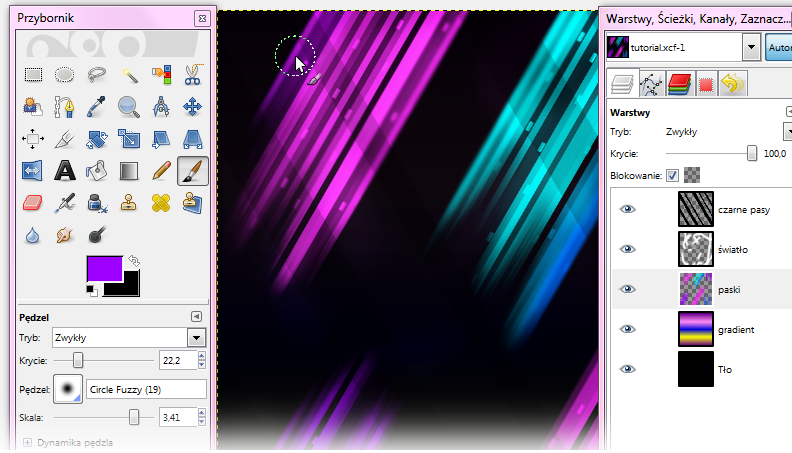 Polskie Forum Użytkowników GIMP-aTutorialeWasze poradniki (Moderator: davlasq)Wątek: Tło kolorwe, świetliste paski - tutorial na prośbę użytkownika