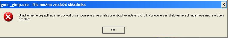 I tu pojawia się problem. Gdy uruchamiam plik gmic_gimp.exe wyskakuje mi taki oto błąd: