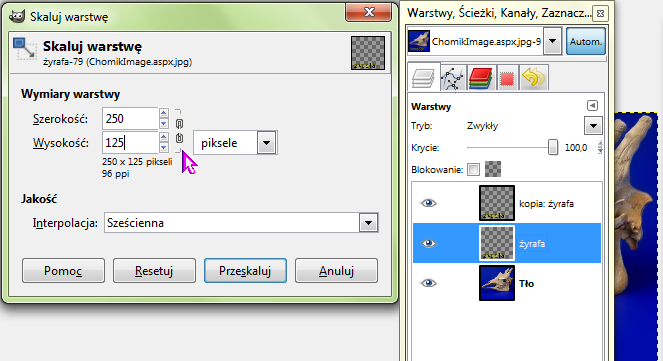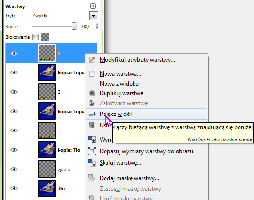 Warstwa → Dopasuj wymiary warstwy do obrazu) i nazywamy je kolejnymi numerami zaczynając od warstwy znajdującej się bezpośrednio nad