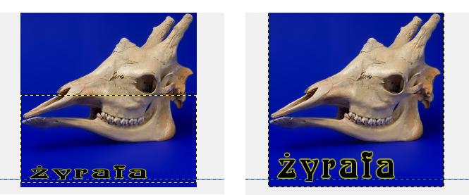 przesuwamy zeskalowaną warstwę tak, aby dolna krawędź napisu idealnie pokrywała się z dolną krawędzią napisu na kopii, najlepiej pomóc sobie