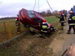 I właśnie dzięki pasom bezpieczeństwa wyszedłem z tego jedynie ze stłuczonym, startym kolanem i dłonią pokaleczoną przez rozpryskującą się szybę, przez cały czas nawet na moment nie zmieniła się moja pozycja w fotelu, jedynie wspomnianym kolanem uderzyłem bodajże w kierownicę. Wyszedłem z wiszącego na płocie samochodu o własnych siłach.