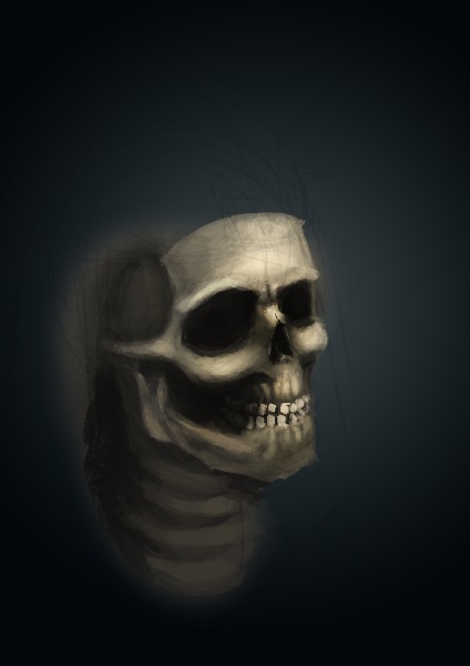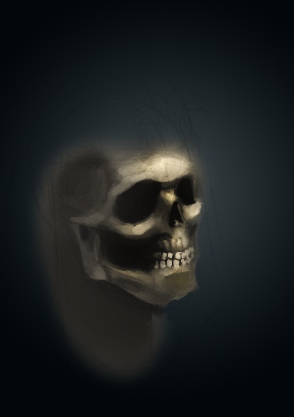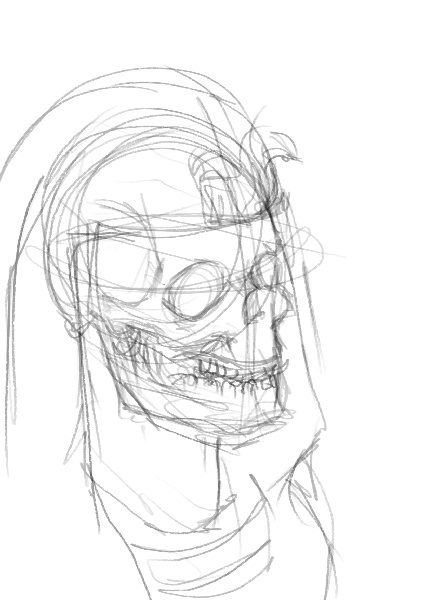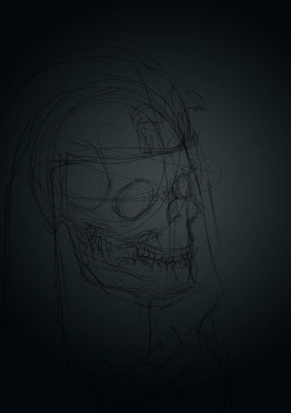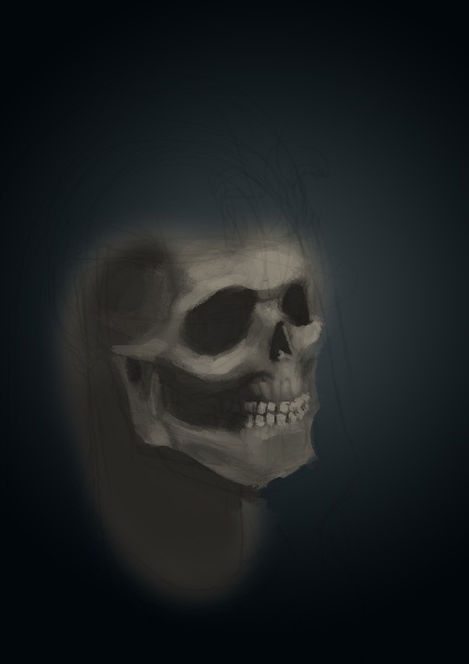 Ok, tutaj moje podejście. Na razie jest to szkic, rzut czaszki jest wyimaginowany, pod koniec spojrzałem na kilka referencji, żeby dodać nieco szczegółów o których mogłem zapomnieć.