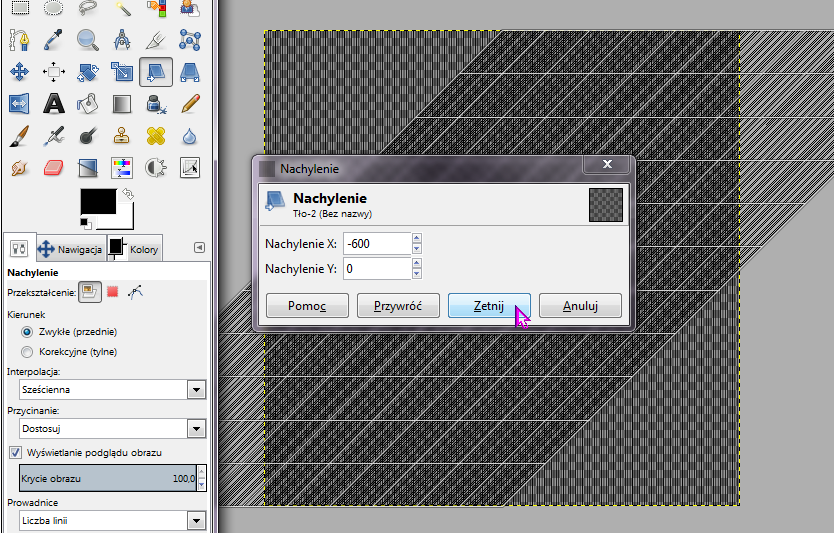 Polskie Forum Użytkowników GIMP-aTutorialeWasze poradniki (Moderator: davlasq)Wątek: Drobne, ukośne paski