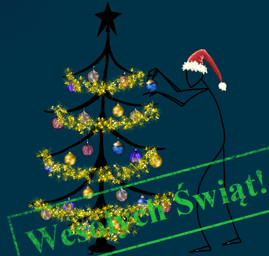 A ja ze swojej strony chciałbym życzyć wesołych świąt braciom i siostrom GIMP-owiczką -  wszystkim użytkownika PFUG!  Uśmiech Wielu sukcesów w nowym roku oraz jeszcze wielu więcej wyróżnień i pomysłowych prac. Abyśmy wszyscy rośli w sile i tworzyli armie GIMP-a! Hou.. Hou.. Wesołych świat!