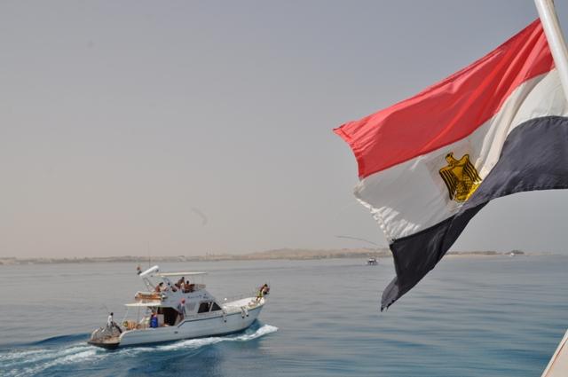 a drugo planowym wyspy. Zdjęcie było wykonane w Hurghadzie.