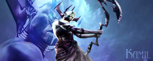 Podobnie jak wyżej. Rozmyty render. Brak jakiegokolwiek wtopienia. W ogóle nie wykorzystałeś ładnie oświetlonej postaci, aby wprowadzić jakieś interesujące światło do sygnatury.