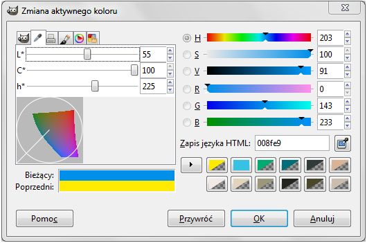 L*C*h color selector to mały moduł wyboru koloru skompilowany dla Gimp-a 2.8 w Windows 64-bit. Strona projektu