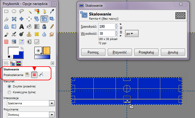 2 i wypełniamy na niej przeskalowane zaznaczenie kolorem
