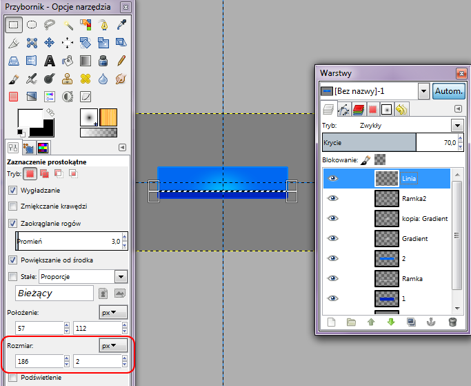 2 px tak, aby pokrywało się dokładnie z dolną krawędzią obramowania z warstwy