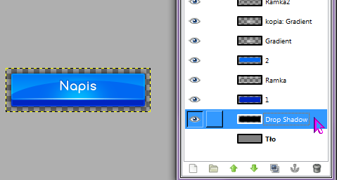 wybraną czcionką i białym kolorem, na środku górnej części przycisku. Klikamy PPM na warstwę tekstową i wybieramy: