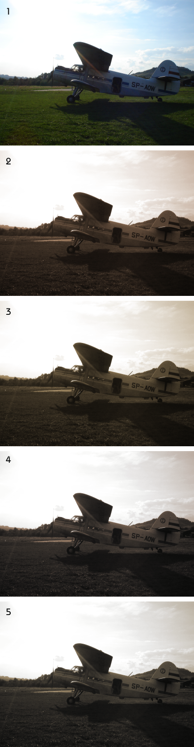 3. Kolor sepii: jaśniejszy, eksponowanie półtonów: tak.