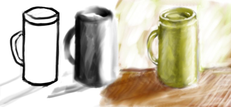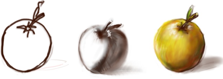 dobra .... turban zmajstrowany .... tylko jakoś niewiem czy lepiej .... brak mi jaskos pomysłu ... turban 1024/768nie będe torturował pełnym rozmiarem ^-^ bo orginał kutke większy jest jakieś poinje .... ?? niema opinji .. Tabletem sie nie pochlastam ..  z tego powodu ok następny tym razem speed - klasyczne ćwiczenie - czyli przedmiot w 3 wersjach - Lineart , Walor i skończony w kolorkach - wieć i klasycznie do bulu i Jabłko .... jabco- musze więcej Martwej natury pomacać dawno nie robiłem .. (zachęcam i innych to dobre ćwiczenie nawet jak sie czujemy mega wymiataczem to można się zaciąć na Jabłku lub kubku z ołówkiem czy pogromcy wdów i śierot - Gruszce) no i kolejne ćwiczenie - kubas - tak samo jak jabłko tylko że to cwiczenie formy walca kubek - dodałem tło bo jakos podejżanie wygladał lewitujac w przestrzeni - a i zrobiłem test trójkątnego pędzla  BTW A najlepiej jako miniatury: ci, co mają szybkie łączą obejrzą sobie ogólny wygląd dzieła, a mnie i innym zaoszczędzisz kilkuset kB jak sie u was Minaturki robi bo prubowałem i mi jakiś error wykrzacza - jka jest formułka i kod ??