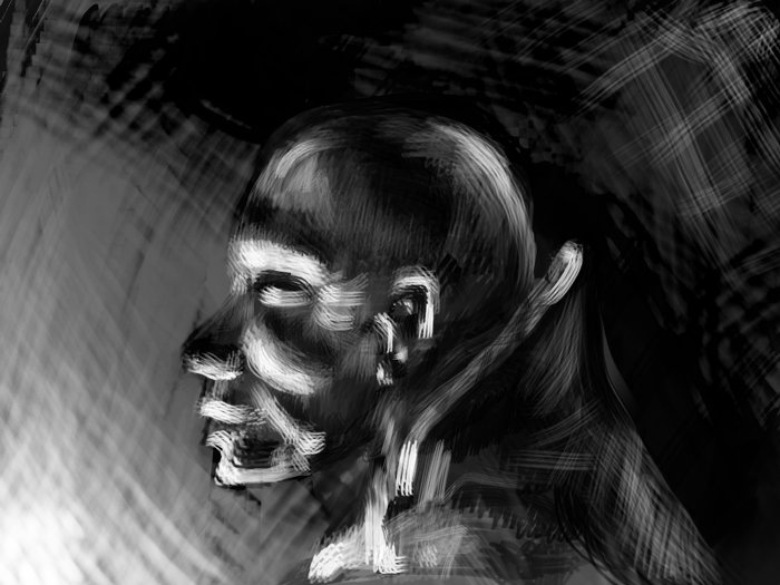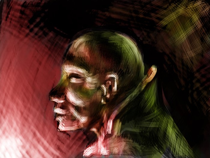 kolejny dzień kolejny speed  - Sylwetka (głowa ) jakiegoś buca z postawionym kołnieżem - robione w odcieniach szarości Cel: Cwiczenie nakładania waloru / Test nowych Pedzli - autorskich efekt: pędzle fajne są (leprze od tych firmowych dostępnych na necie - wzasadzie daja podejżane PS efekt  ) a głlowa - no cuż jak na 5 minut fo fajnie ale sa błedy .... - poprawie łebi łeb 2 - czyli to samo z rozkładeµ światła - czerwone to orginalne a żielone to odbite - takie tam kolejne ćwiczenie łeb z kolorkiem (dziwnym)