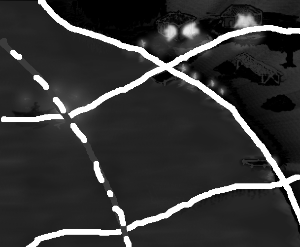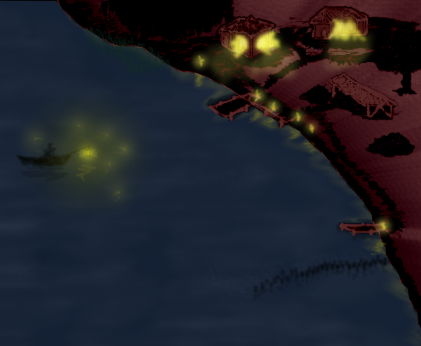 2 - od śwaterłka w górnym prawym rogu przez małe molo do statku i gdzieś tam w mroki po lewo