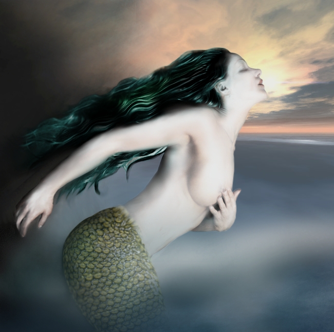 sama Syrena wykonana jest osobno- pokolorowana ze szkicu, z doklejonymi włosami, zabarwionymi i przedłużonymi. Później dodałam ogon i inne dodatki do niej(cienie i td). Na koniec tło skomponowane z trzech różnych obrazków Język