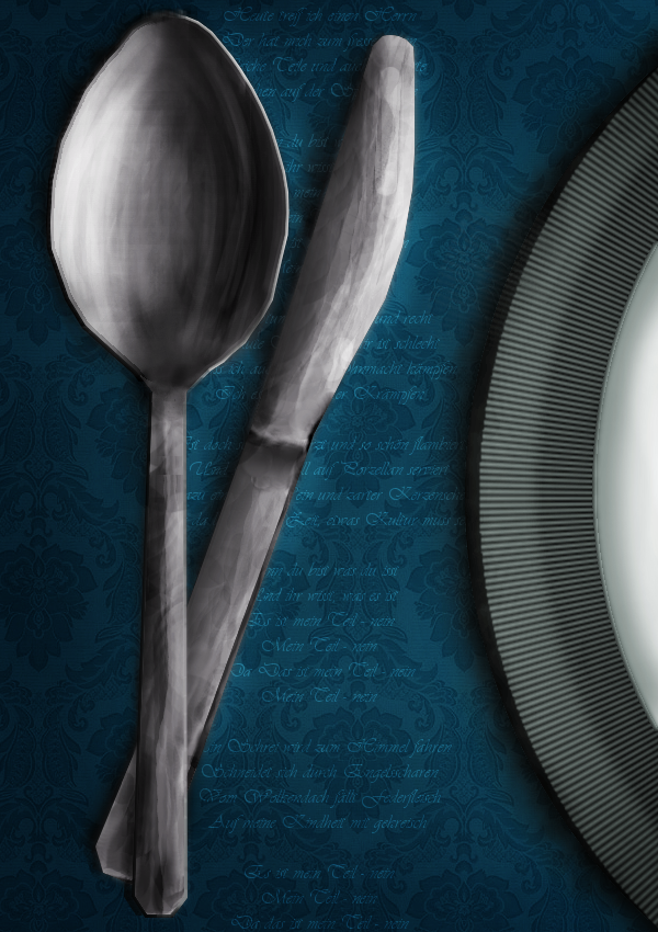 Cienie świetne, tło również pasuje do obrazka... może trochę zbyt kanciasto wyszła lewa górna część łyżki, może ten element noża, który na sugerować, że jest on obiektem 3D (prawa strona noża) jest zbyt jednolity, ale to nie zmienia faktu, że grafika ogółem prezentuje się całkiem nieźle.