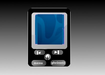 Rozumiem że się starasz ale efekt jest kiepski. Przyciski do przesuwania muzyki krzywe i widać że rysowane odręcznie przy pomocy pędzle. Ja bym użył ścieżek, efekt byłby o niebo lepszy. Przycisk na środku też odręcznie rysowany. Ekran - czemu te warstwy są nie równo ułożone ? Ogólnie to cieniutko.