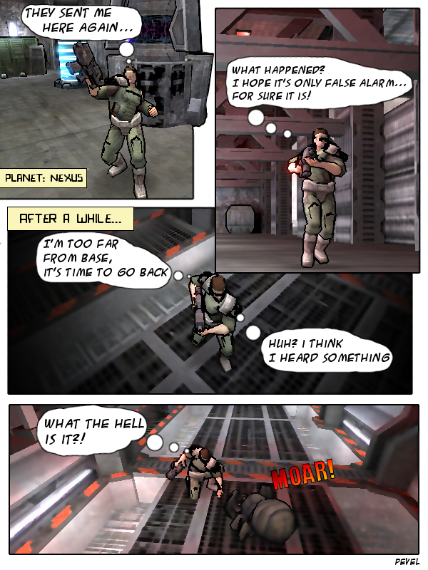 Komiks domowej roboty, stworzony ze screenów z gry Tremulous. Można powiedzieć, taki prolog - mam zamiar kontynuować. Głównie koncentrowałem się na komiksowym wyglądzie, a więc fabuła może się wydawać żenująca ;P