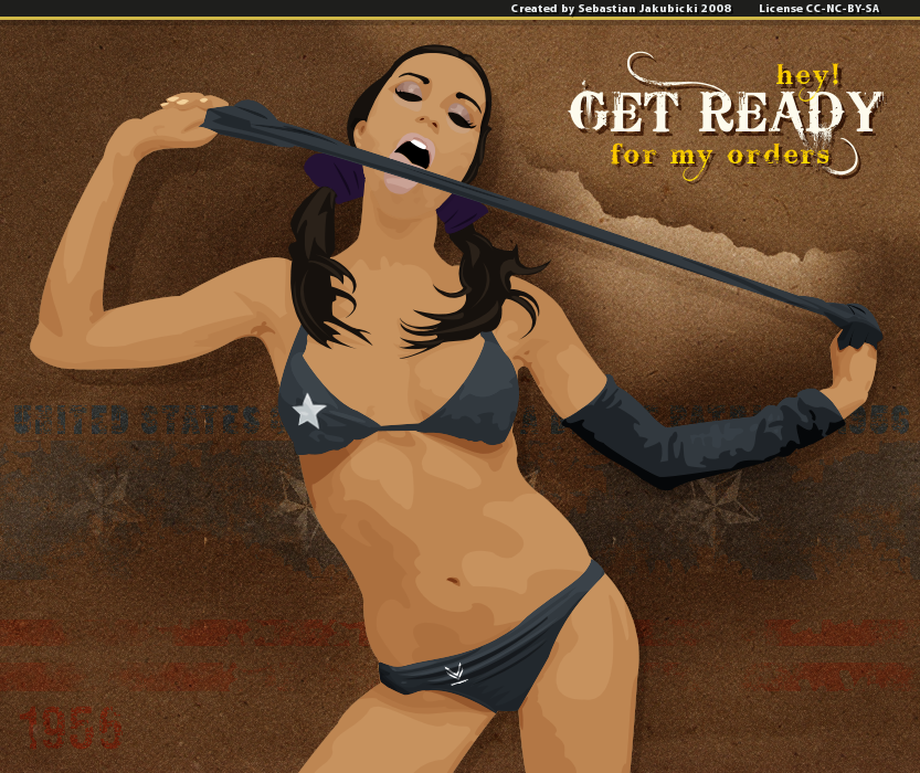 Co tu dużo mówić, rozkręcasz się  Panienka świetna, całość wcale nie wygląda wulgarnie (przynajmniej wg mnie), a w tej tematyce wiadomo, łatwo przesadzić... Bardzo dobrze odwzorowana twarz, naturalna mina. Jęzor rewelacja  Tło i napis b. ładne. Co ona trzyma w ręce? Rozciągniętą pończochę?  Co do błędów, to włosy mogłeś trochę lepiej ukształtować, i coś jest nie tak z gaciami po (naszej) lewej. Cieniowanie brzucha rzeczywiście dziwne. Jednak zastanawiam się, czy prostsze nie byłoby nudne.