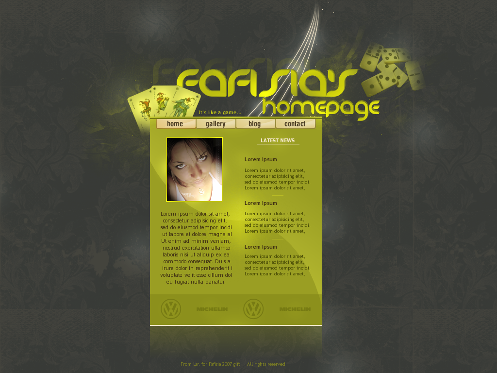 Skromne, ale styl pasuje do portfolio. Tak żeby przyjemnie się czytało. Na dA: