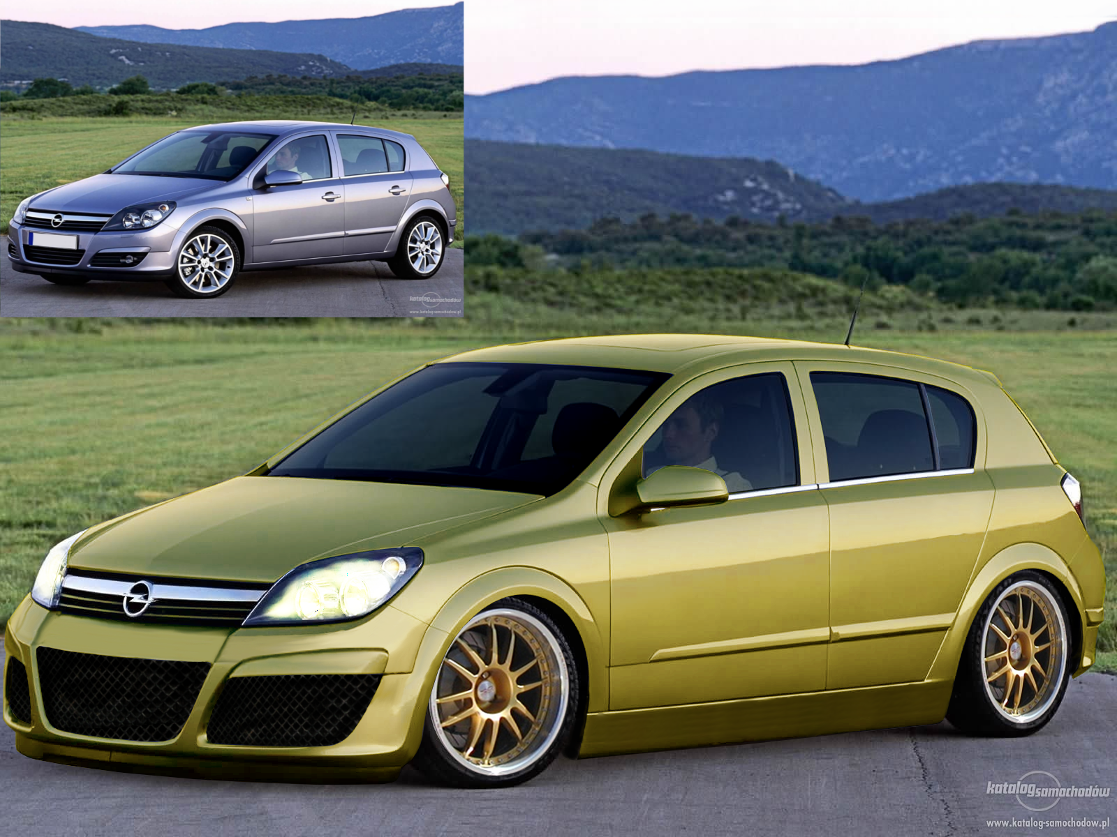 hmm podobna do mojej astry.. prawie tak samo zrobiłeś przedni zderzak.. fele tez podobne ;] ale... zderzak leci z perspektywa, tylna fela płaska, dalej źle robisz z tą siatką!!! cieniuje się na brzegach wlotów a nie maże pędzlem po całej siatce .... plusy hmm chyba tylko nawet ładny kolor, ładnie usunięte klamki no i ten próg jako tako wygląda. 4/5