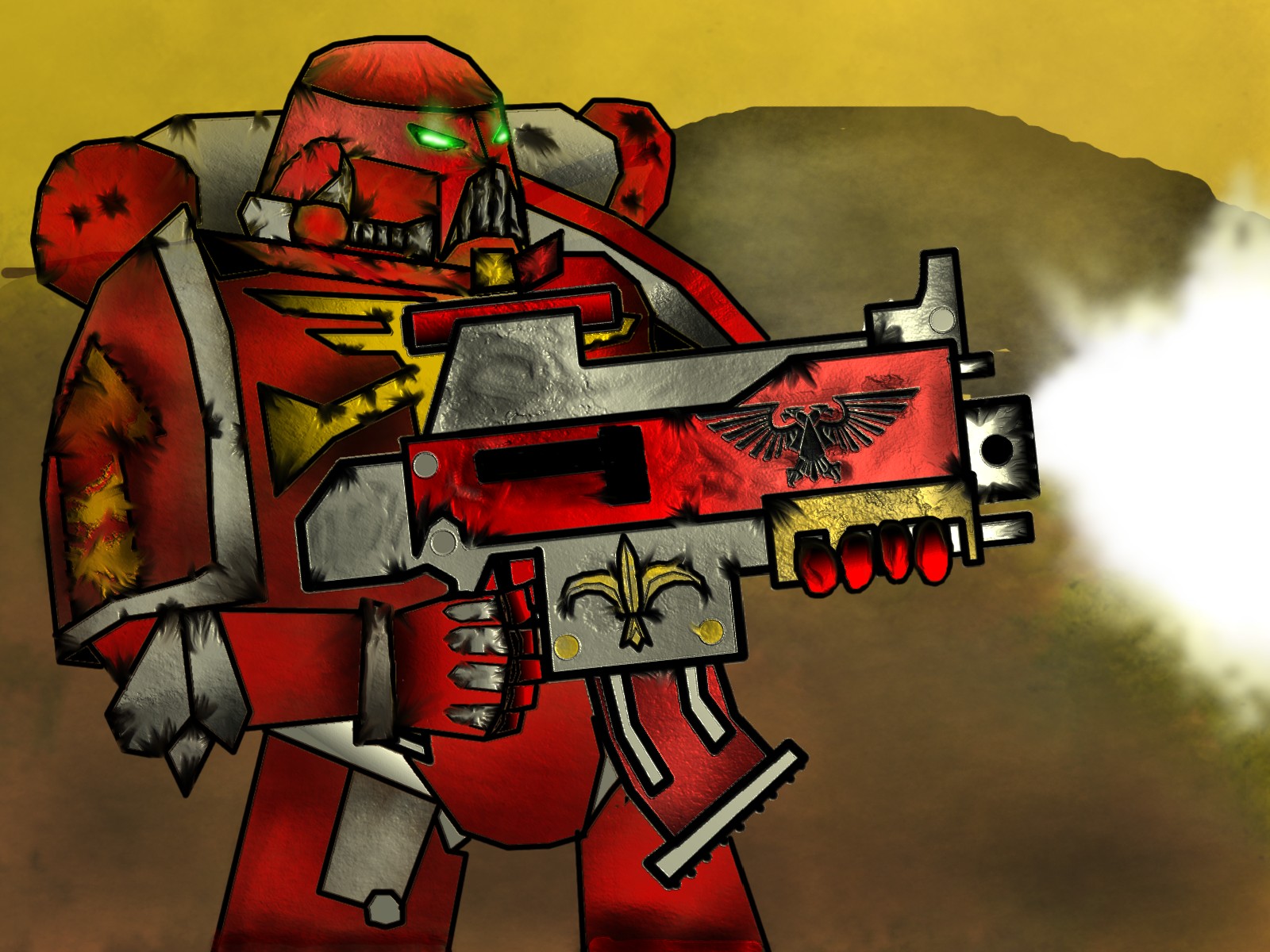 Hehe to są Blood Angels co nie?? bo Blood Ravens mają takie szaro-kremowe naramienniki ;P Hehe takie jakby z taniej gierki flashowej, ale pomysł fajny ;P