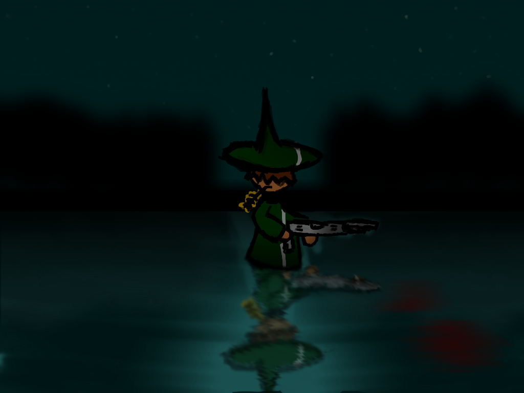 Nagłe natchnienie w szkole przeniesione do gimpa. Co sądzicie? (muminkowy włóczykij w wersji gore (krew, strzelba Język) Wg. mnie wyszedł fajny klimat.
