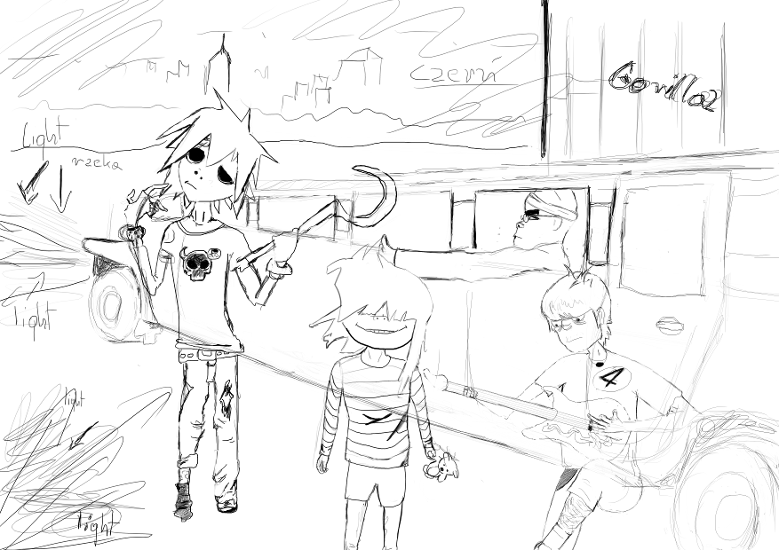 | Music Fan Art: 1# Gorillaz - szkic autorstwa HasiuK |