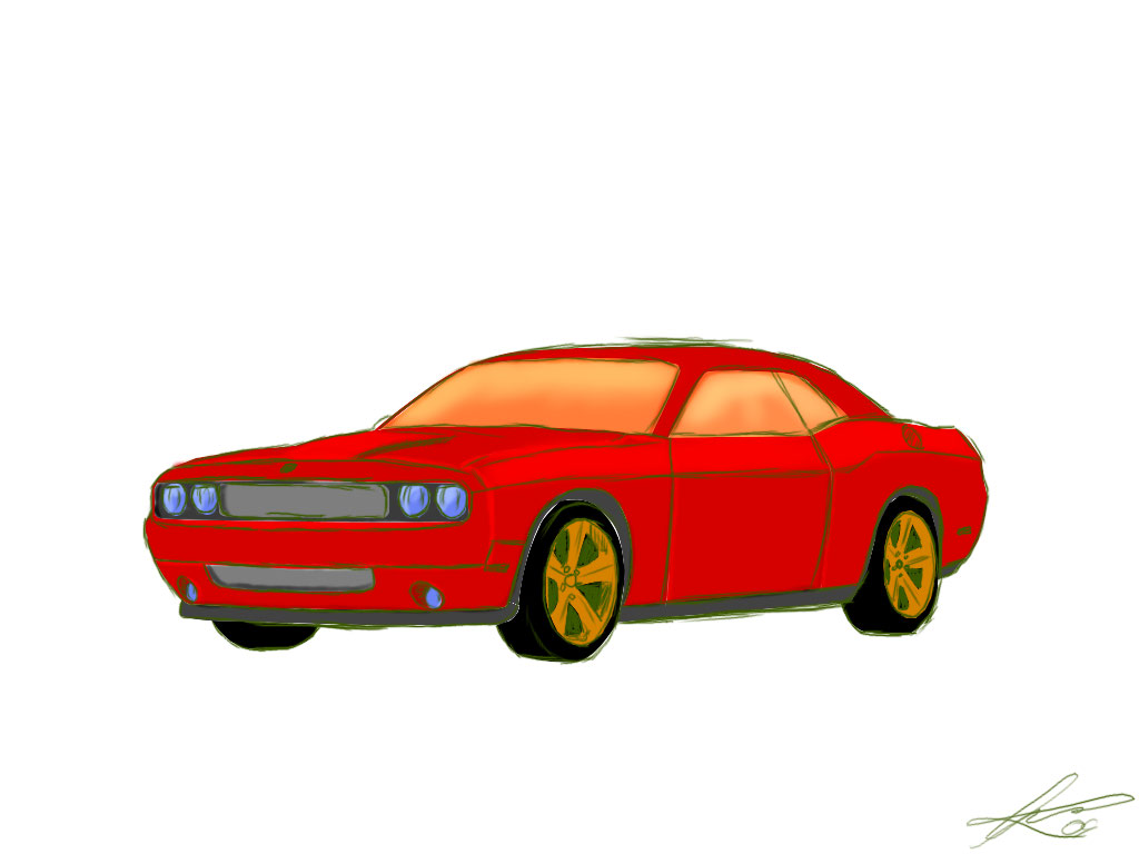 Dodge Challenger w ósmym wydaniu. Miało wyjść super i ekstra a wyszło całkiem na odwrót. Trafia do kosza, bo nie radzę sobie z malowaniem odbić na masce