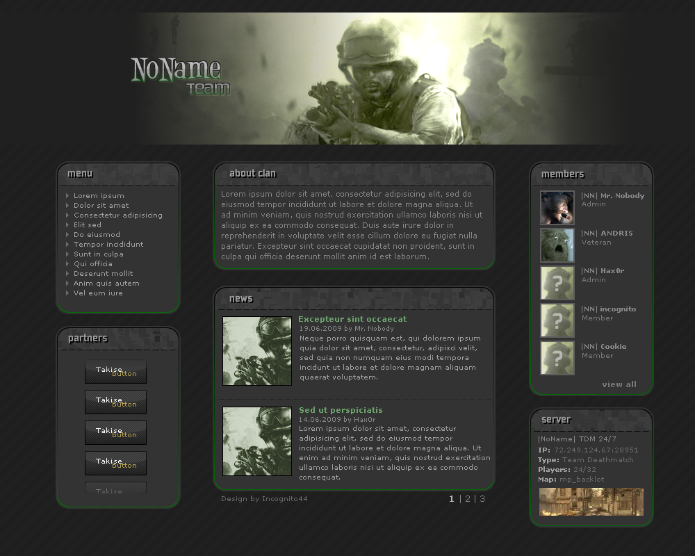 layout webdesign call of duty 4 clan