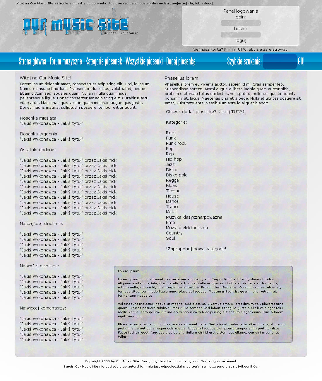 our music site lay layout design web webdesign