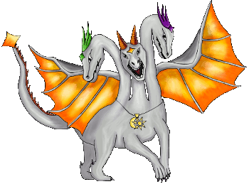 Zamontowanie jego lewej łapy kompletnie leży, nie powinno być widoczne, kolory głów bocznych dopasuj do środkowej, dodaj cień, aby przykleić tego smoka do czegoś. Pominę fakt, że chaos, to nie żywioł. Domeną smoka może być chaos d:
