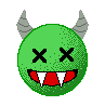 Szkoda, że tego zielonego są tylko dwa odcienie, tak to dithering był by bardzo dobry. Te oczy straszliwie odstają, a wewnętrzne, czarne kontury (tak jak wspomniała werag) mogłyby być pokolorowane. Rogi są płaskie i kanciate, to samo z zębami i językiem (chodzi o cieniowanie). Przez brak cieniowania praca wydaje się płaska, a chyba nie o to nam chodzi.