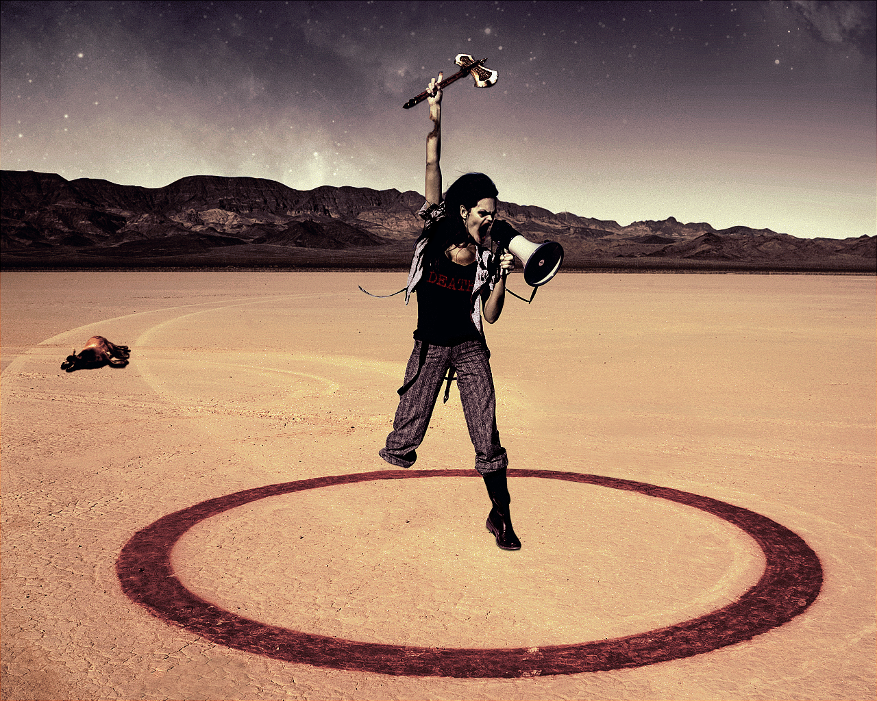 zombie reporter laska baba babka kobieta pustynia desert piasek niebo krowa adam mickewicz