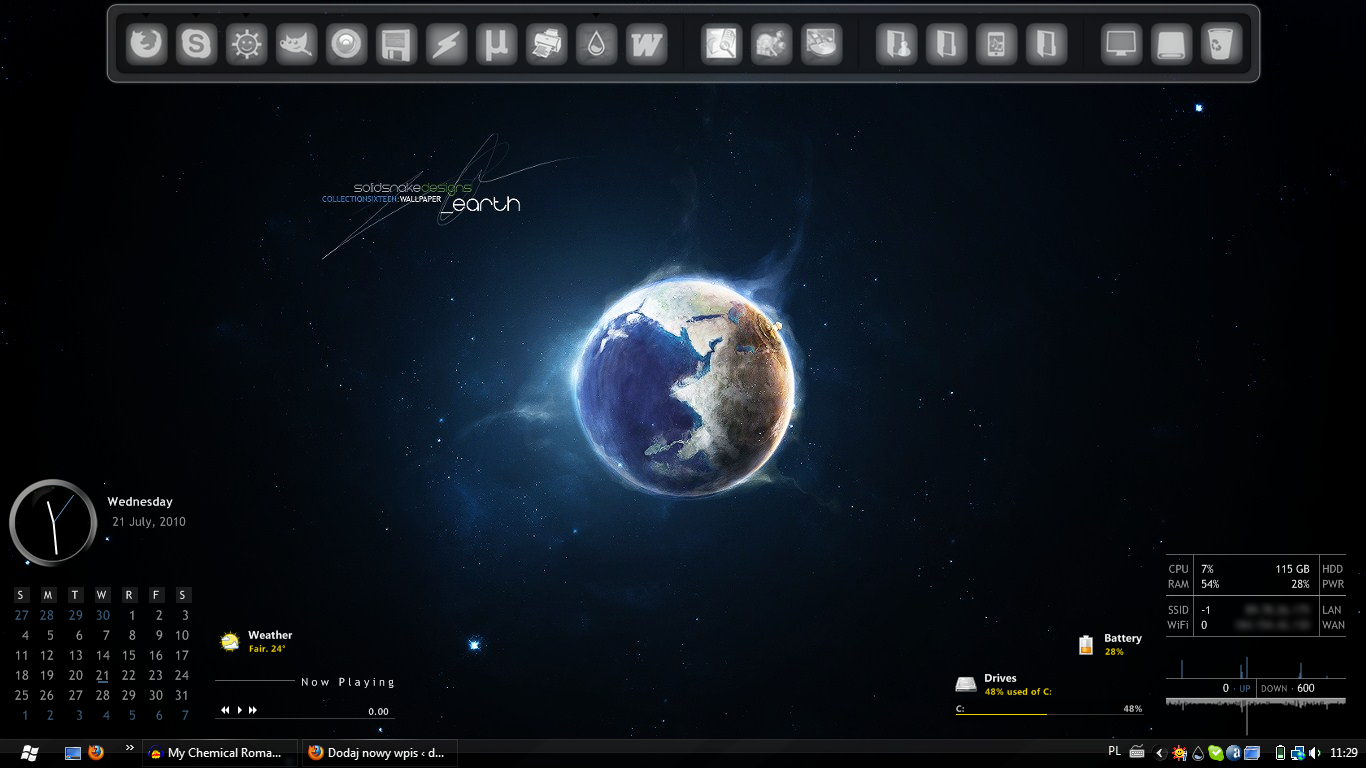 Nowa tapeta, więcej ikonek w RocketDocku i gadżety zamienione na Rainmeter.