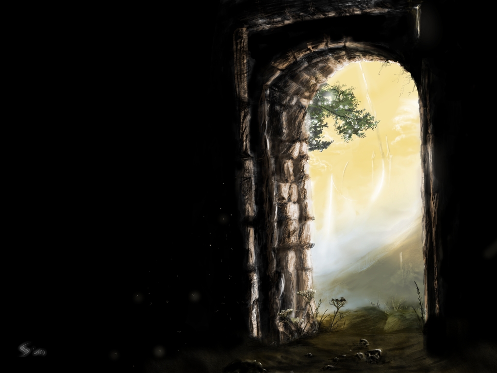 Ładne, ale nie powiedziałbym, że na palącej pustyni występuje czarna ziemia i trawa, wraz z drzewem liściastym... Dopasuj dokładniej opis. Trzyma klimat, jest dobrze.
