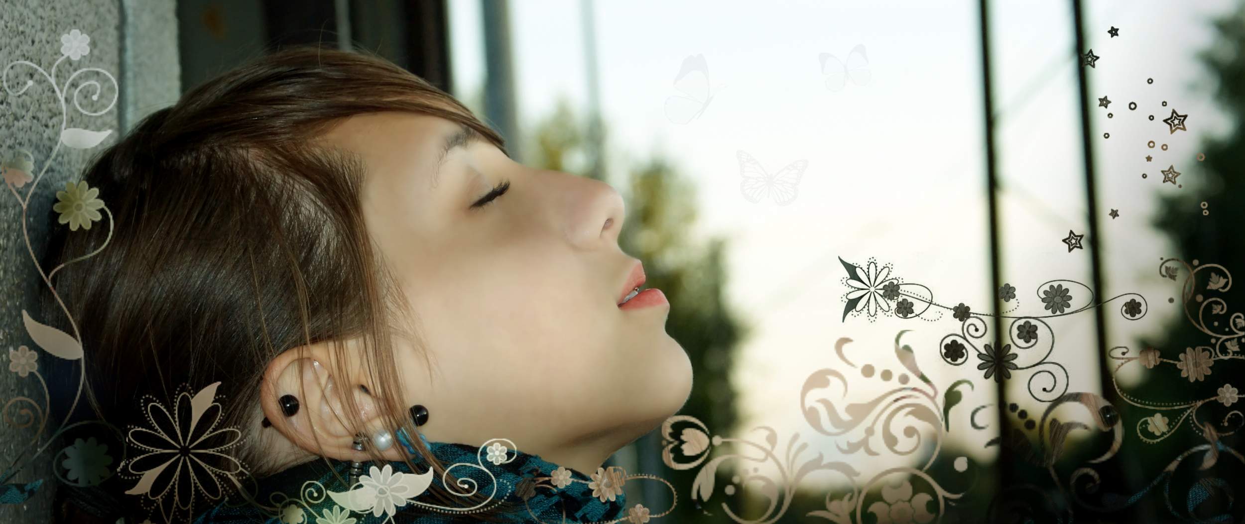 wpierw przepuszczone przez Noiseware Community celem usunięcia szumów potem wygładzona skóra, cienie na twarzy, usta, clipping mask i cienie obrazu. Motylki w tle Chichot