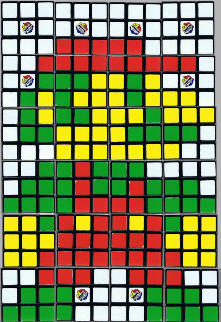 Pixel art wykonany za pomocą jednej kostki rubika Uśmiech