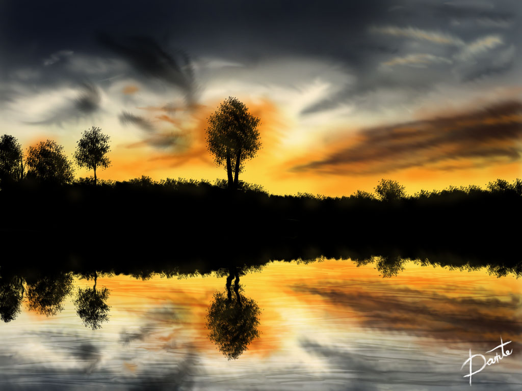 To ja może z innego punktu widzenia ocenię ;-) A więc: bardzo ładne te odcienie pomarańczowego, całkiem nieźle się to komponuje. Za dużo czarnego imo w środkowej częsci pracy. Do tego za mocne to odbicie w jeziorze. Mogłeś dać tam bardziej lajtowe kolory, żeby lepiej się to zgrywało ;-) Jeszcze wspomnę o ostatniej rzeczy, mało ważnej ale...otóż wydaje mi się, że podpis za duży, zbyt skupia uwagę ;-) Oczywiście to tylko moja opinia laika w DP  Pzdr