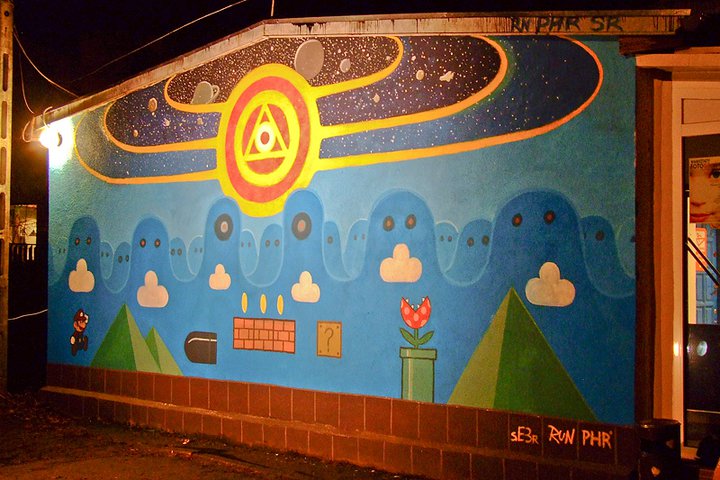 mural mario coin pieniądze kosmos gwiazdy planety
