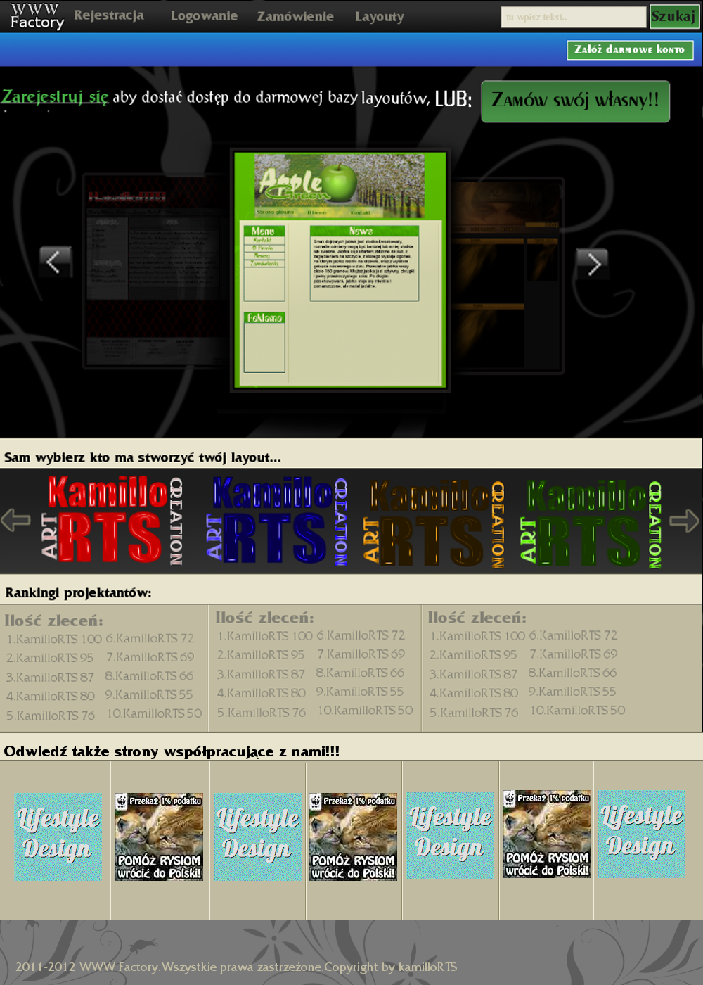 Szukam grafików chętnych stworzyć ze mną stronę na której można zamawiać layouty a także pobierać bezpłatne, jeżeli wszystko sie powiedzie i strona będzie funkcjonowala(mamy jak narazie jednego dobrego web mastera)to oczywiście zarabianie na tym będzie dobrze szło!!!Szukamy także webmasterów. A co do pracy,zacząłem ją robić to myślałem o treningu ale z czasem wpadłem na ten pomysł , mozna też zrobić cos jak generator layoutów!!wiecej na PW