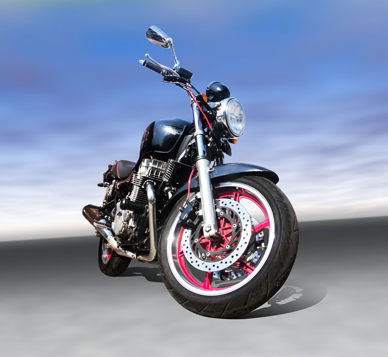 Prawdziwy motocykl, szparowanie i retusz, tlo generowane gimpowym filtrem chumr.