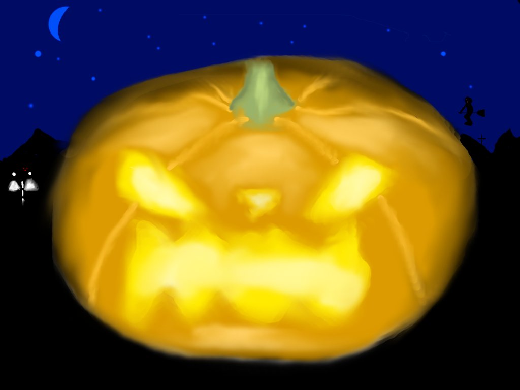 Po pierwsze, to lata, po drugie, dynia ma z reguły ostro wycięte krawędzie, tutaj one są rozmyte i brak głębi cięcia. Zupełnie tak, jakby kula była papierowej grubości. Kompozycyjnie słabo.