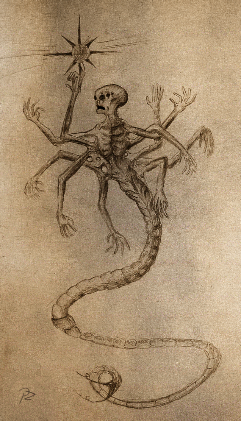 praca świetna 5/5. ale ja mam inne zdanie do tego, że to by był doskonały twór ewolucji. do tego "stworzenia" pasuje powiedzenie "Co za dużo to nie zdrowo". Naco komu tyle rąk? poco komu taki długi ogon? nie wiem... nie mam chyba wyobraźni...  ale praca naprawde wspaniała, pozdrawiam autora!