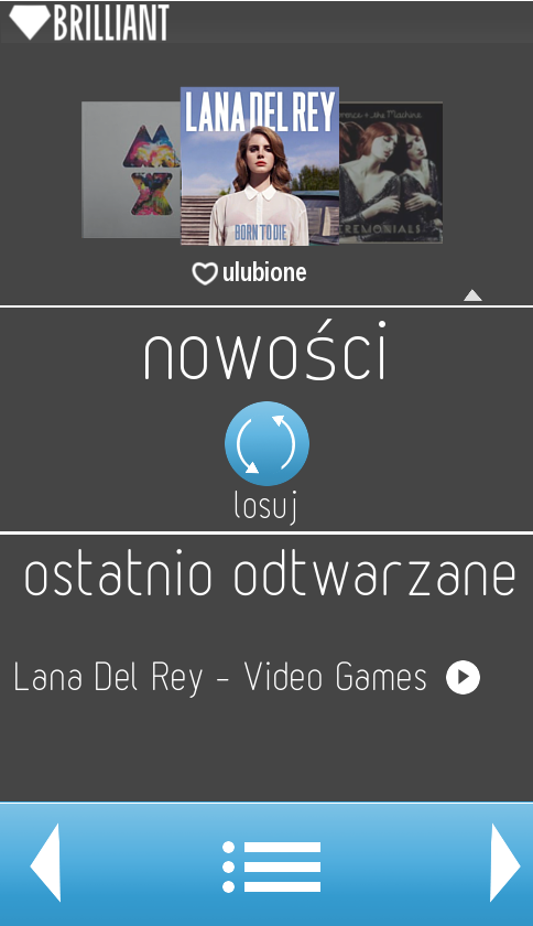 Wymyślona aplikacja do odtwarzania muzyki i jej zakupu.
