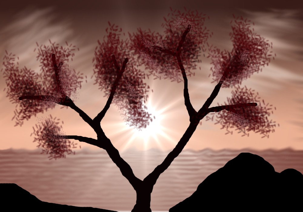 Praca w miarę dobrze zrobiona jak na jedną z pierwszych, szkoda tylko, że do stworzenia tego użyłeś samych wzorów pędzli a nie odręcznego malowania oprócz gałęzi drzewa i skał. Kontury skał są zbyt ostre. Ale kolorystycznie podoba mi się. Zacznij malować odręcznie bo będziesz miał złe nawyki malowania "szablonami". Pozdrawiam i zapraszam na www.angelika-dp.manifo.com Ostatnio edytowane pzez: 10.06.2012, 19:50:02