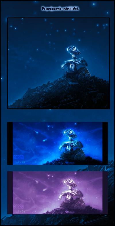 Wall-E sygnaturka. Zostałem poproszony o nią przez jednego z użytkowników forum Uśmiech W sumie nie wiedziałem czy dam radę po takiej przerwie zrobić coś użytecznego ale nie wyszło chyba najgorzej Mrugnięcie