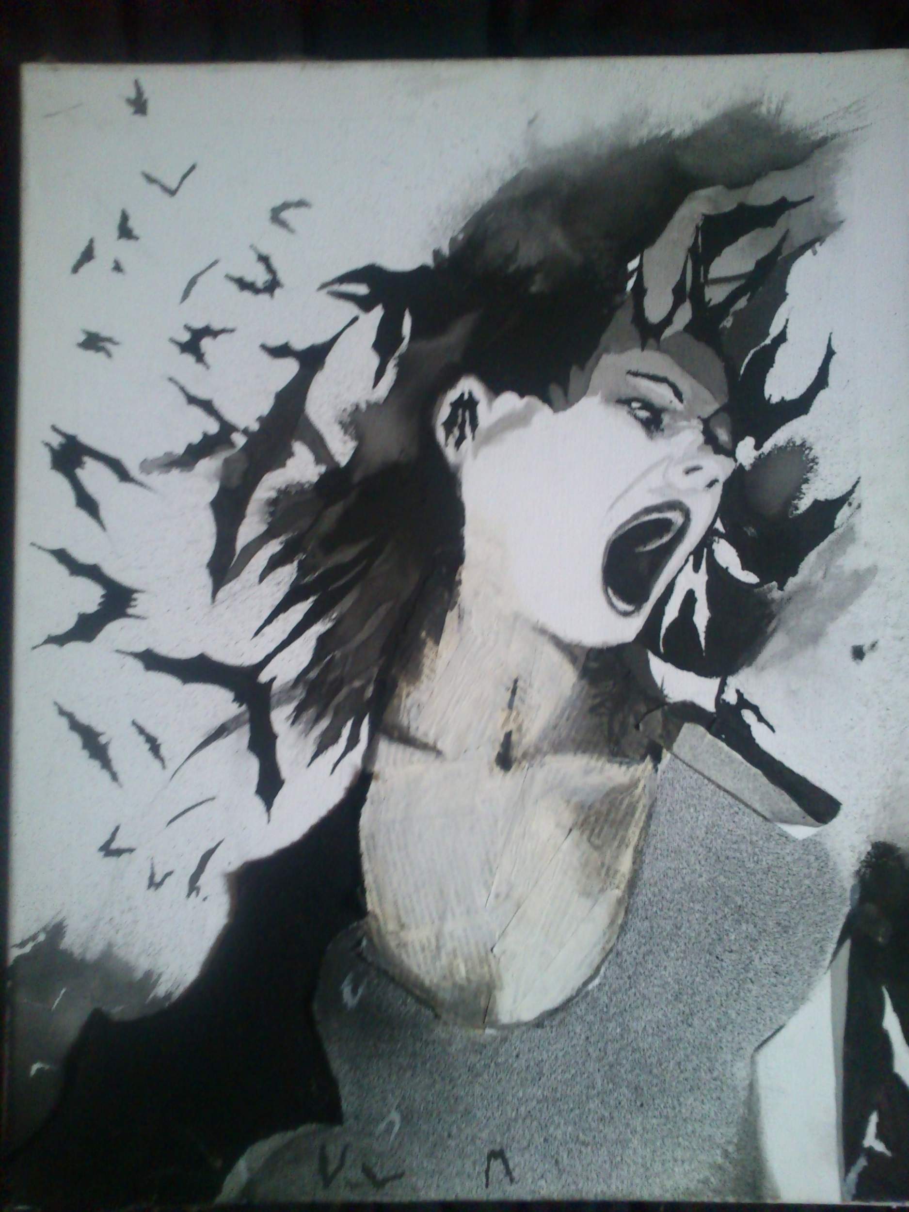 płótno atrament sztuka krzyk kobieta nietoperze