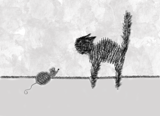 Tak odwróciłam rolę, kot boi się myszy Mrugnięcie